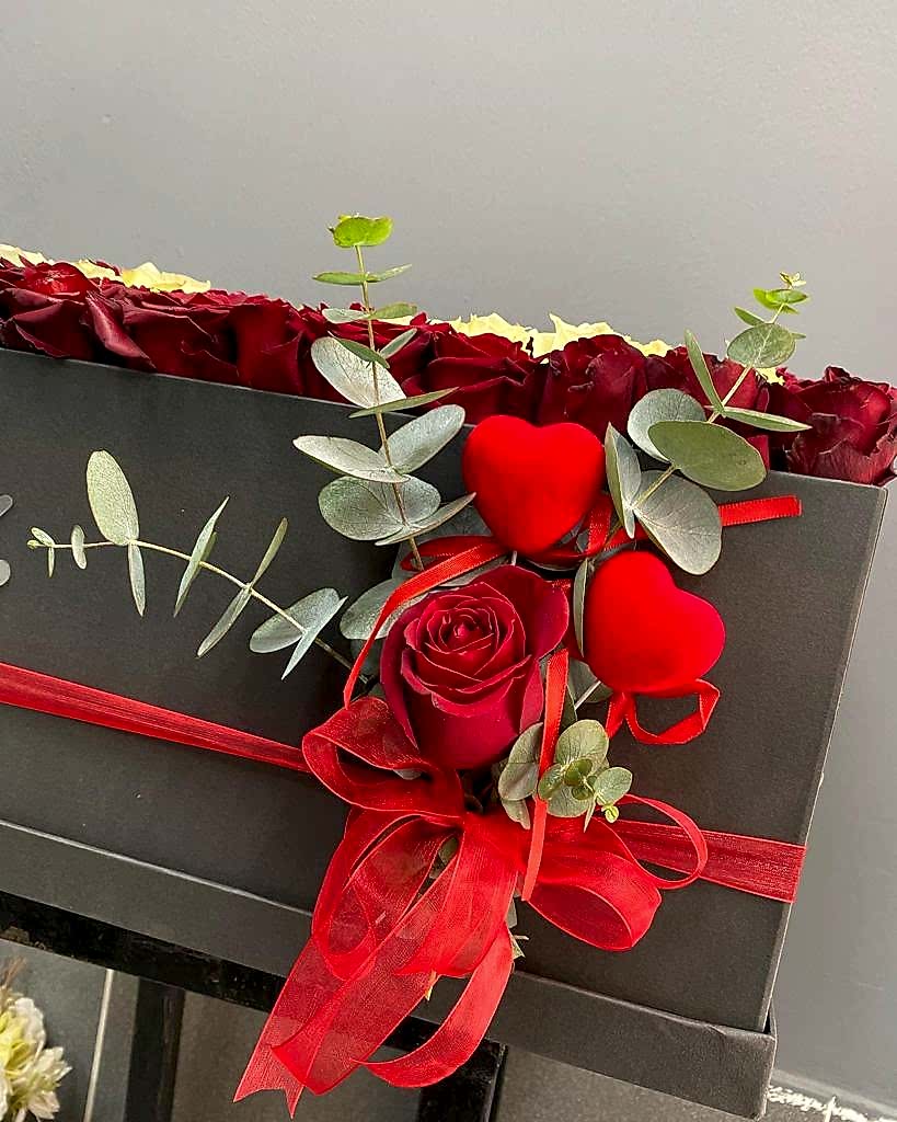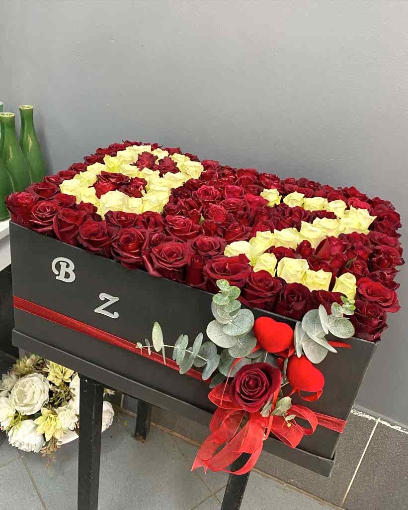 Aşkın Baş Harfleri İle Kırmızı Ve Beyaz Güllerden Oluşmuş Kare Veya Silindir Kutu